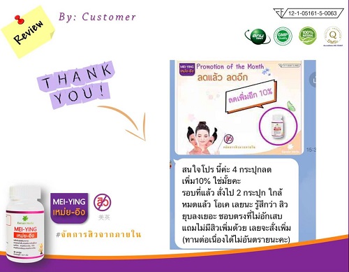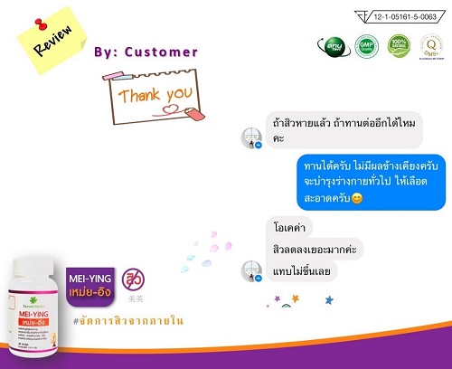 อีกเหตุผล ที่ทำให้ เหม่ย-อิง Mei-Ying เป็นที่ติดใจของคนที่มีปัญหาสิว มากมาย นั่นก็คือ เห็นผลจริง