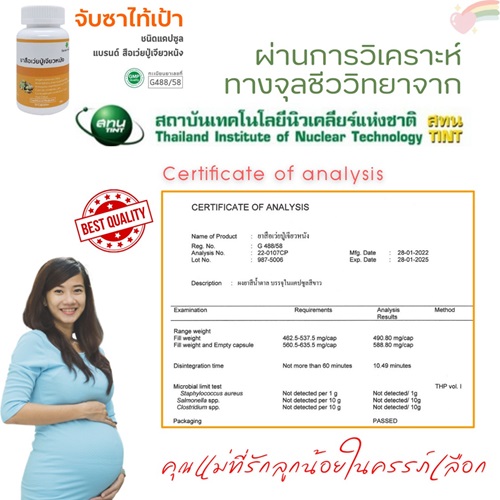ผ่านการตรวจวิเคราะห์ทางจุลชีววิทยา จาก สถาบันเทคโนโลยีนิวเคลียร์แห่งชาติ(สทน.) ภายใต้ควบคุมของภาครัฐ