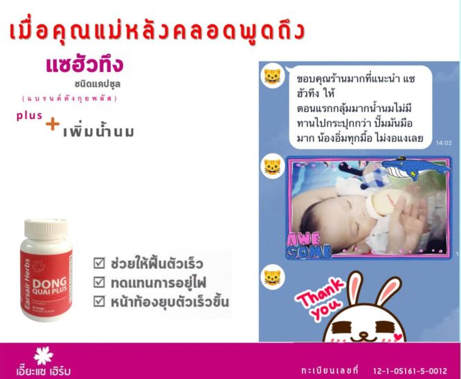 แซฮัวทึง แบรนด์ตังกุยพลัส สำหรับคุณแม่หลังคลอดโดยเฉพาะ (สูตรสมุนไพรจีน ที่ตามตำรา จะว่าด้วยเรื่อง บำรุงหลังคลอด ให้ฟื้นเร็ว ทดแทนการอยู่ไฟ มดลูกเข้าอู่เร็ว และเพิ่มน้ำนมให้มีคุณภาพ)