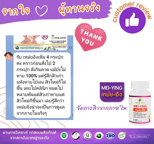 จึงทำให้ สูตรเหม่ย-อิง Mei-Ying ถูกพูดถึงกันมากมายในตอนนี้ เพราะ เป็นสูตรสมุนไพรจีนที่ไม่มี เสตีรอยด์ จากตามตำราจะว่าด้วย การรักษาสิวจากภายใน ให้ร่างกายสะอาด รักษาระดับความสมดุลของฮอร์โมนส์ ให้เลือดลมเดินคล่องตัว ลดการสะสมพิษตกค้างในร่างกาย ซึ่งถ้าร่างกายภายในสะอาด ผิวหนังภายนอกก็จะไม่มีการขับของเสียออกมา