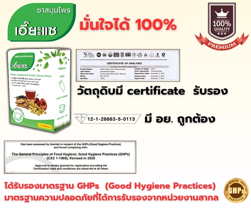 ได้รับรองมาตรฐาน GHPs (Good Hygiene Practices) มาตรฐานความปลอดภัยที่ได้การรับรองจากหน่วยงานสากล