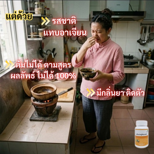 แต่ด้วย รสชาติ แทบอาเจียน ต้มไม่ได้ตามสูตรทำให้ผลลัพธ์ไม่100% กลัวทานแล้วกลิ่นยาติดลมหายใจ ทำให้เสียบุคลิก